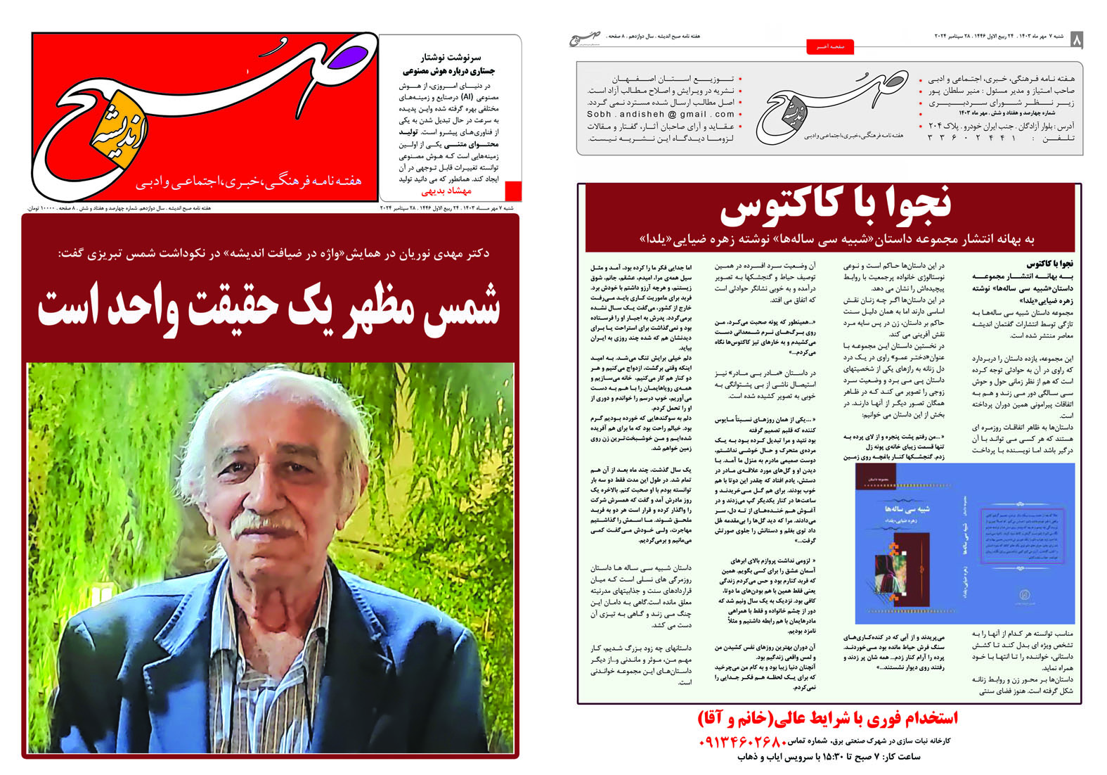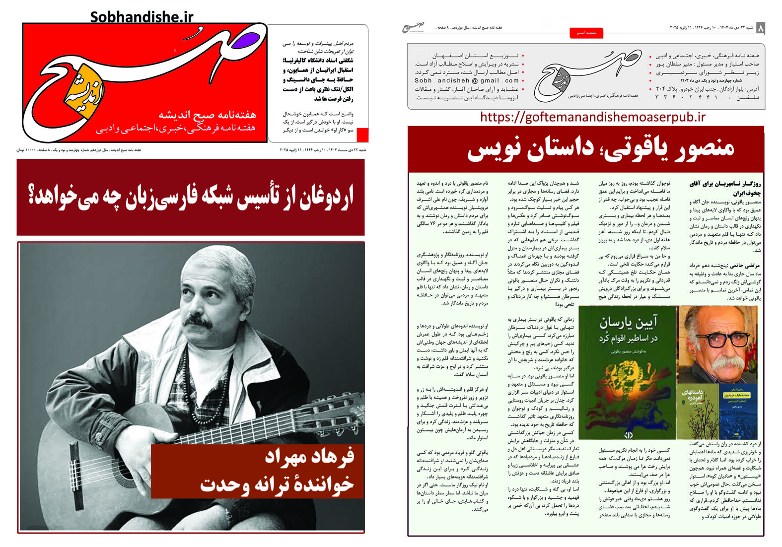 هفته نامه صبح اندیشه.27 بهمن 1403