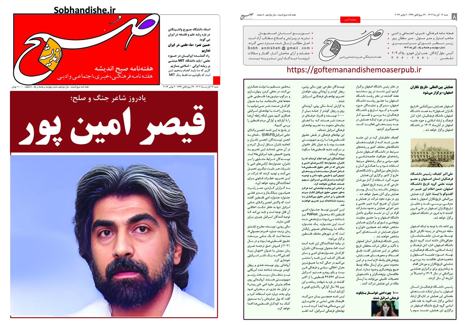 قیصر امین پور شاعر جنگ و صلح. هفته نامه صبح اندیشه شماره 481 12 آبان 1403