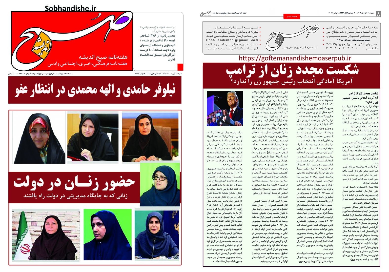 شکست مجدد زنان از ترامپ(آیا آمریکا آمادگی رئیس جمهور زن را ندارد؟).هفته نامه صبح اندیشه شماره 481 تاریخ 19 آبان 1403