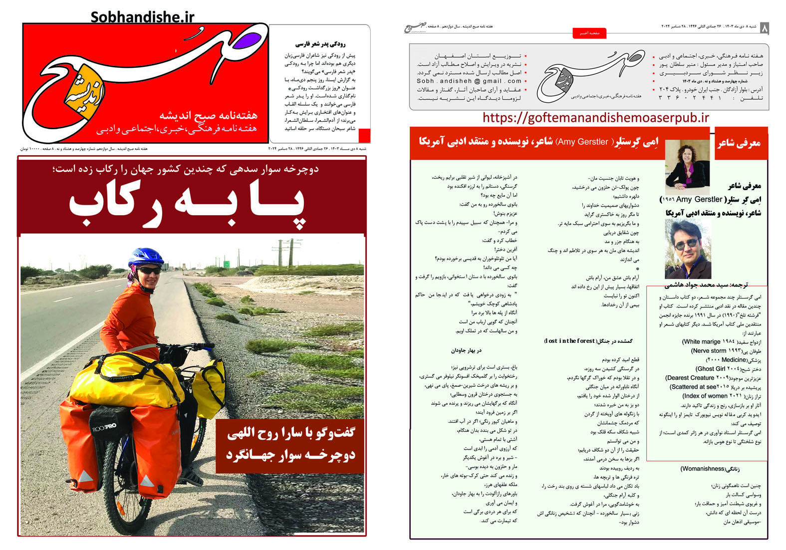 امی گرستلرAmy Gerstler مترجم سید محمد جواد هاشمی.هفته نامه صبح اندیشه شماره489 هشتم دی ماه 1403