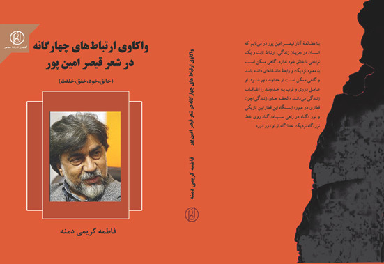 کتاب واکاوی ارتباطهای چههارگانه در شعر قیصر امین پور(خالق،خود،خلق،خلقت).نویسنده فاطمه کریمی دمنه.انتشارات گفتمان اندیشه معاصر